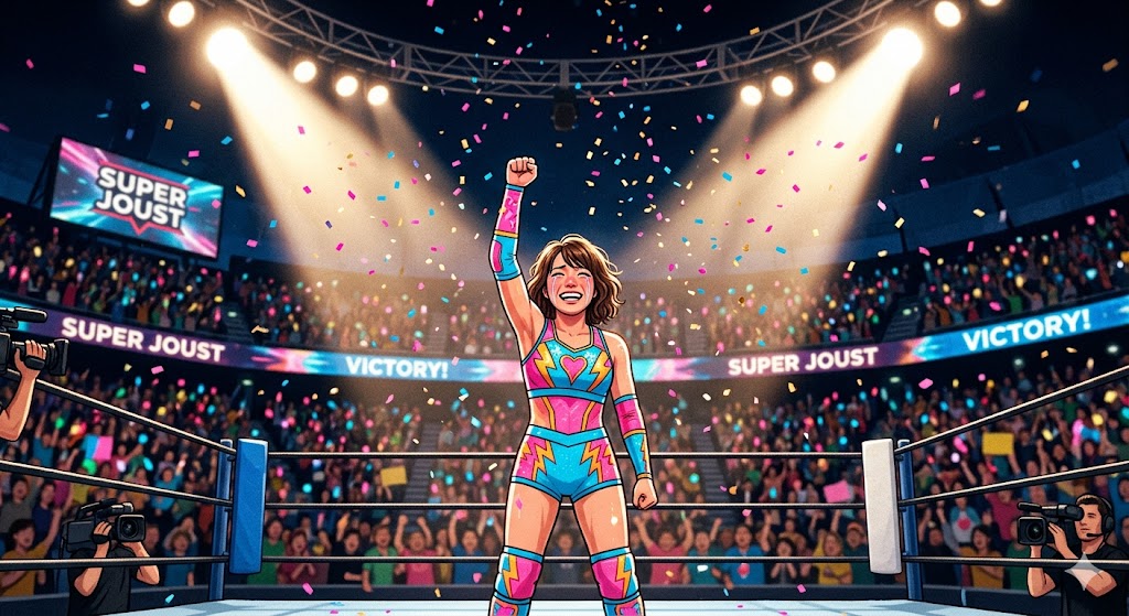 試合は元ワンダー王者・安納選手の猛攻にさらされる苦しい展開となりましたが、フワちゃんは驚異の粘りを見せました。観客の度肝を抜いたのは、コーナー最上段から放ったムーンサルトプレス。これまで封印してきた大技をこの勝負所で初披露し、会場は割れんばかりの歓声に包まれました。最後は安納選手の攻撃を鮮やかに切り返し、師匠・葉月選手直伝の「ラ・マヒストラル」で見事な丸め込み。執念で大金星を掴み取りました。