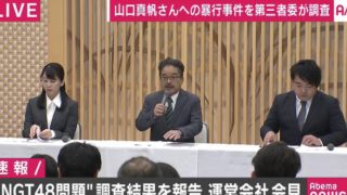 NGT48山口真帆さんが暴行被害を受けた事件で、運営会社のAKSが第三者委員会の調査報告会見が行われました。しかし会見中、山口さんが松村取締役に謝罪を要求されたことなどをツイッターで暴露。記者からツイートについて質問が及ぶも、しどろもどろに...